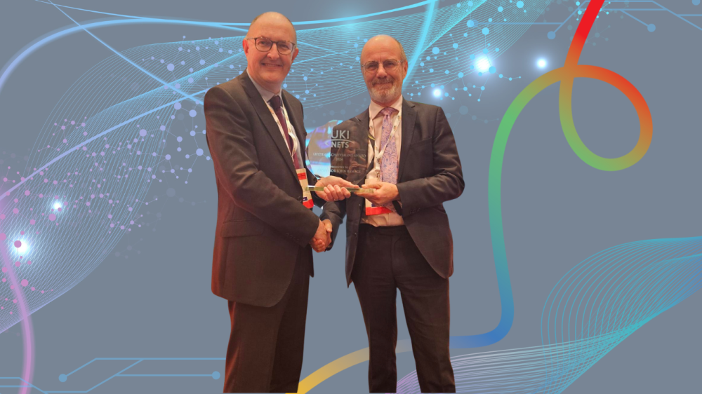 The research team at Hampshire Hospitals is celebrating a major win, with Professor John Ramage, deputy research director, having been presented with a Lifetime Achievement Award by the UK and Ireland Neuroendocrine Tumour Society (UKINETS).