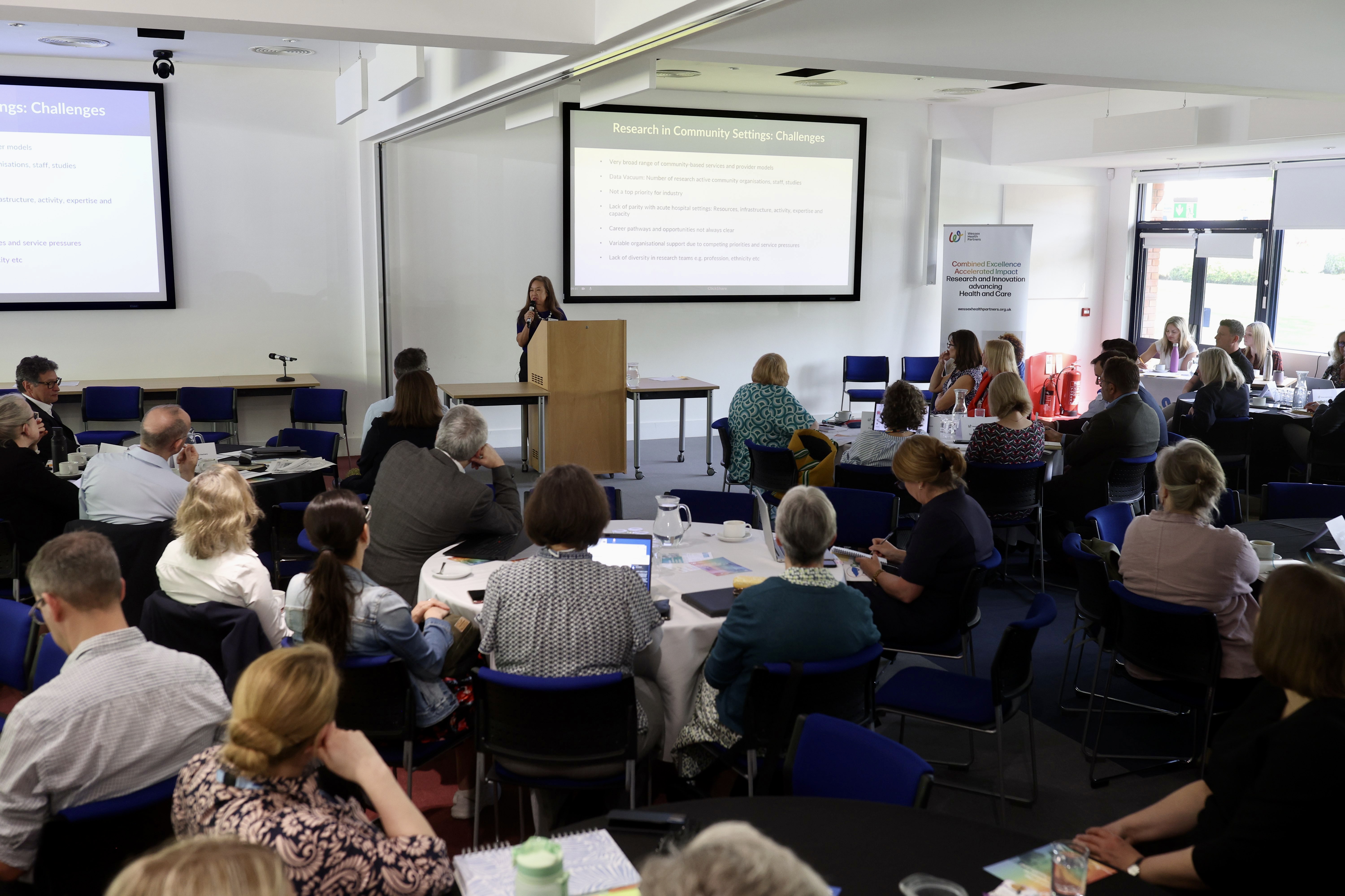 In her keynote presentation, Dr Shera Chok, a London-based GP and the NIHR's National Lead for Community Settings, spoke of the challenges involved in carrying out research in community settings when compared to hospital settings.